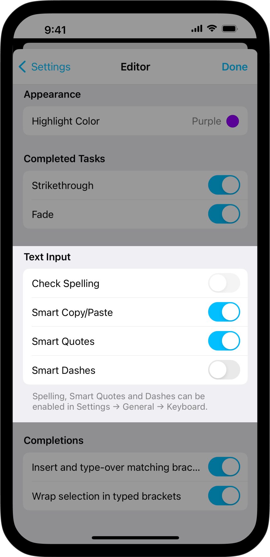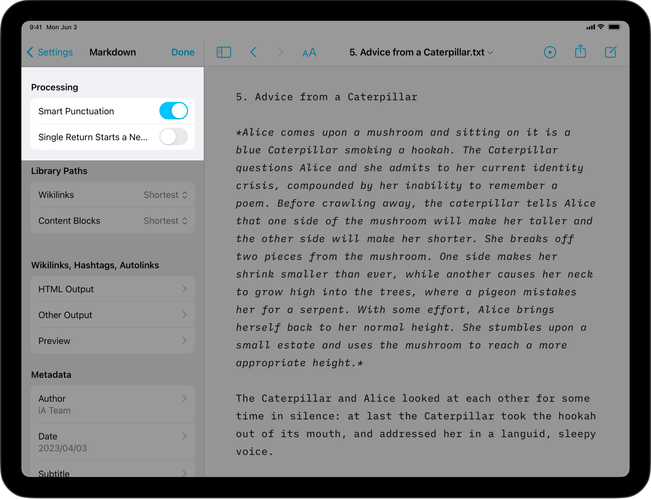 Some form of automatic text completion or transformation are available in iA Writer for iPadOS. Thanks to them, you can keep focused on writing instead of dealing with minutiae.
