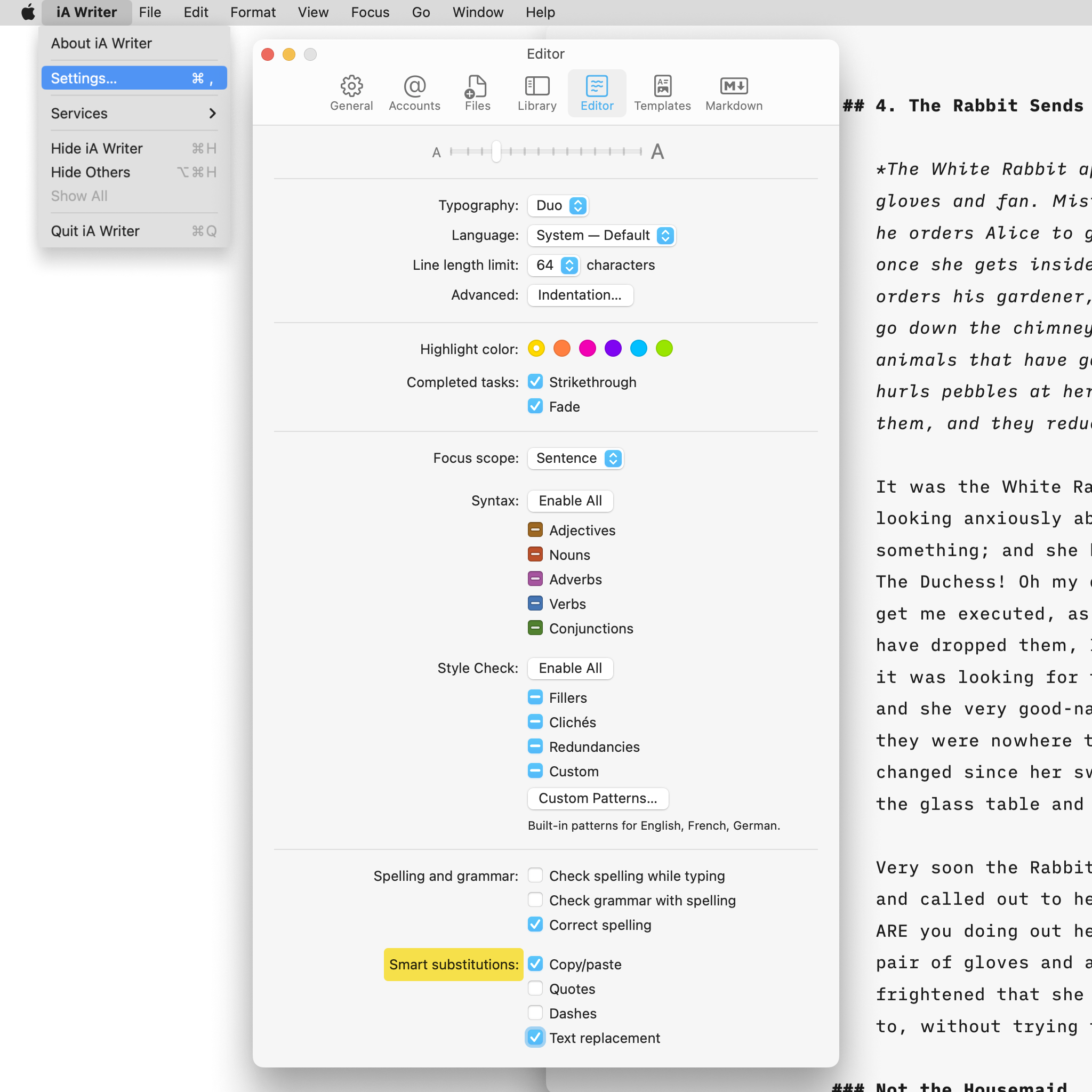 Note that Smart Substitution will have effect in both the Editor and in the Preview.