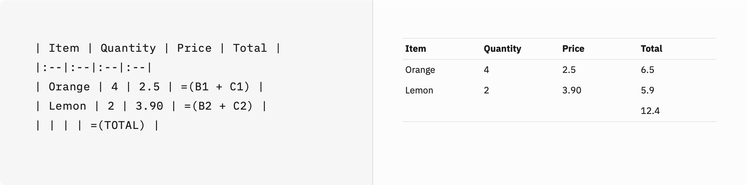 You can use the syntax =(…) to perform mathematical calculations in your tables.