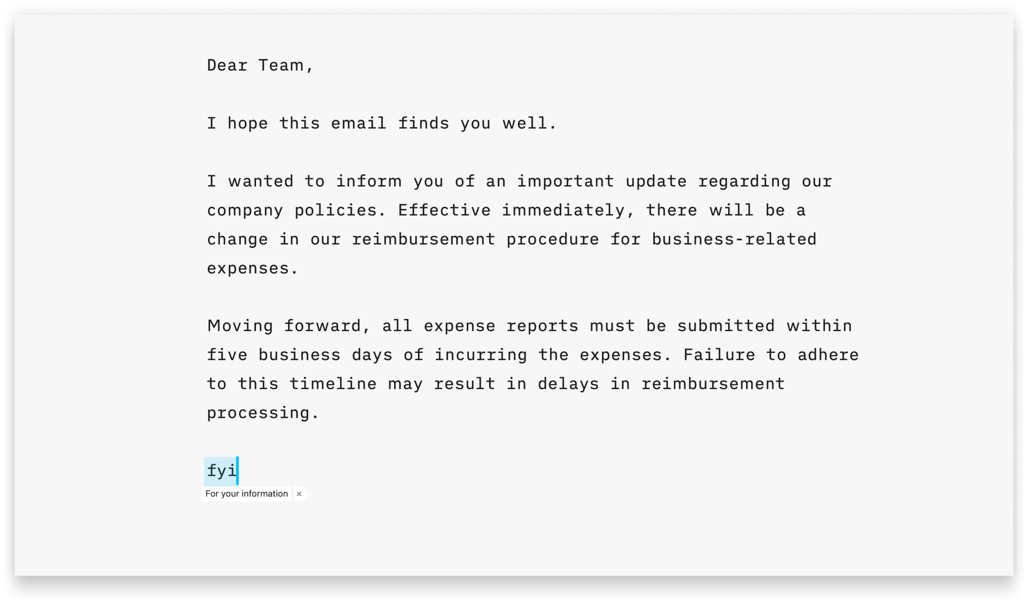 Text replacement boosts your writing speed: designate a word (typically an abbreviation) and the corresponding word or phrase that it should automatically input. For example, when you type “FYI,” it will be replaced with “for your information.”