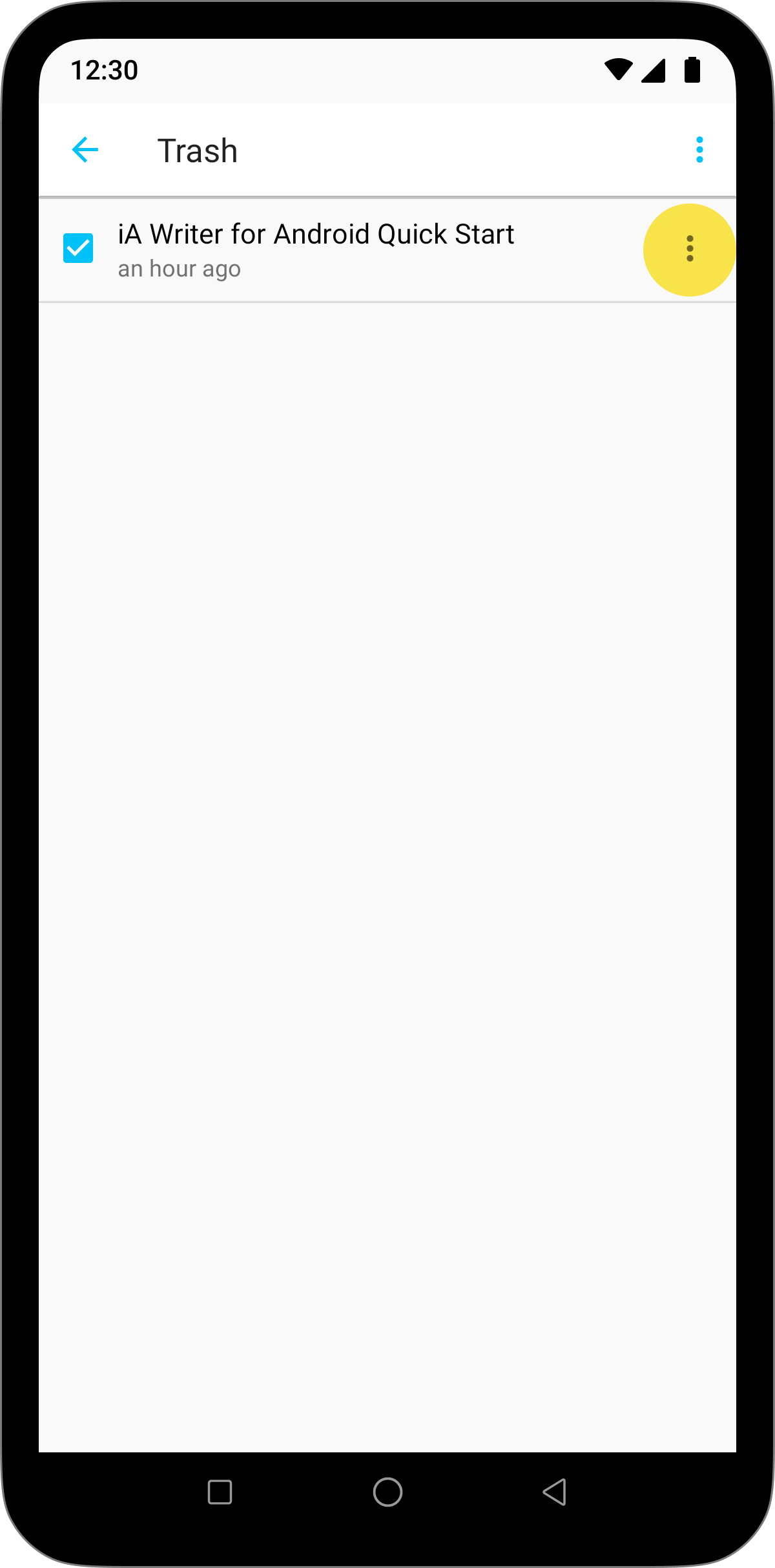 iA Writer for Android include a trash folder which contains recently deleted files.