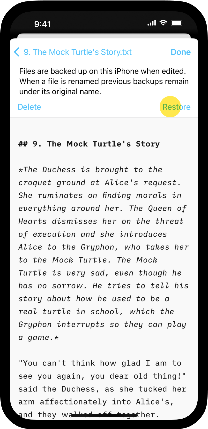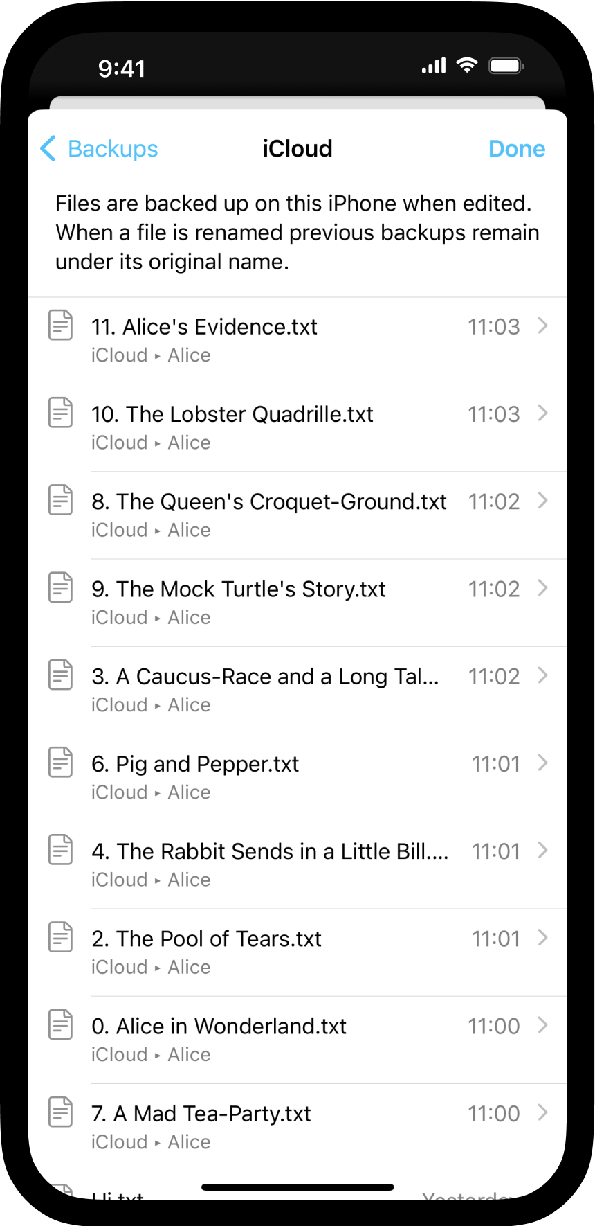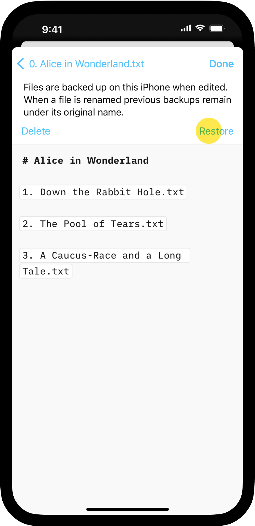 You have various options to recover your previous work, either through the iA Writer app or iCloud. iA Writer for iOS comes with built-in support for iCloud Drive. In addition to the advantages of document synchronization across devices, users also benefit from the extra security provided by online recovery tools available in iCloud.