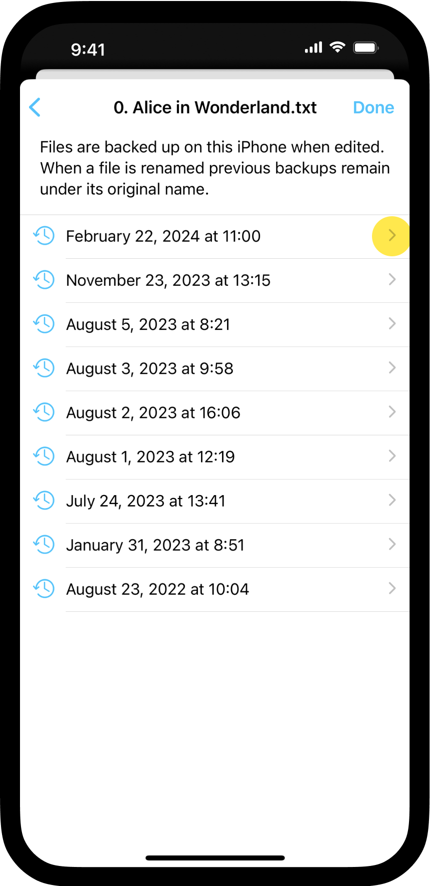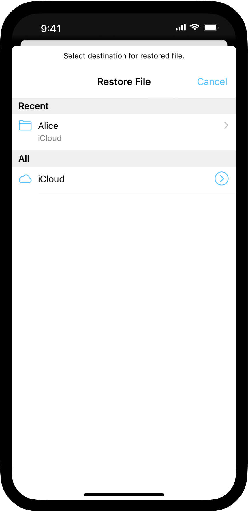 If you’ve deleted a file, you may be able to locate a prior backup by navigating to the top of the Library and long-pressing on a Location.