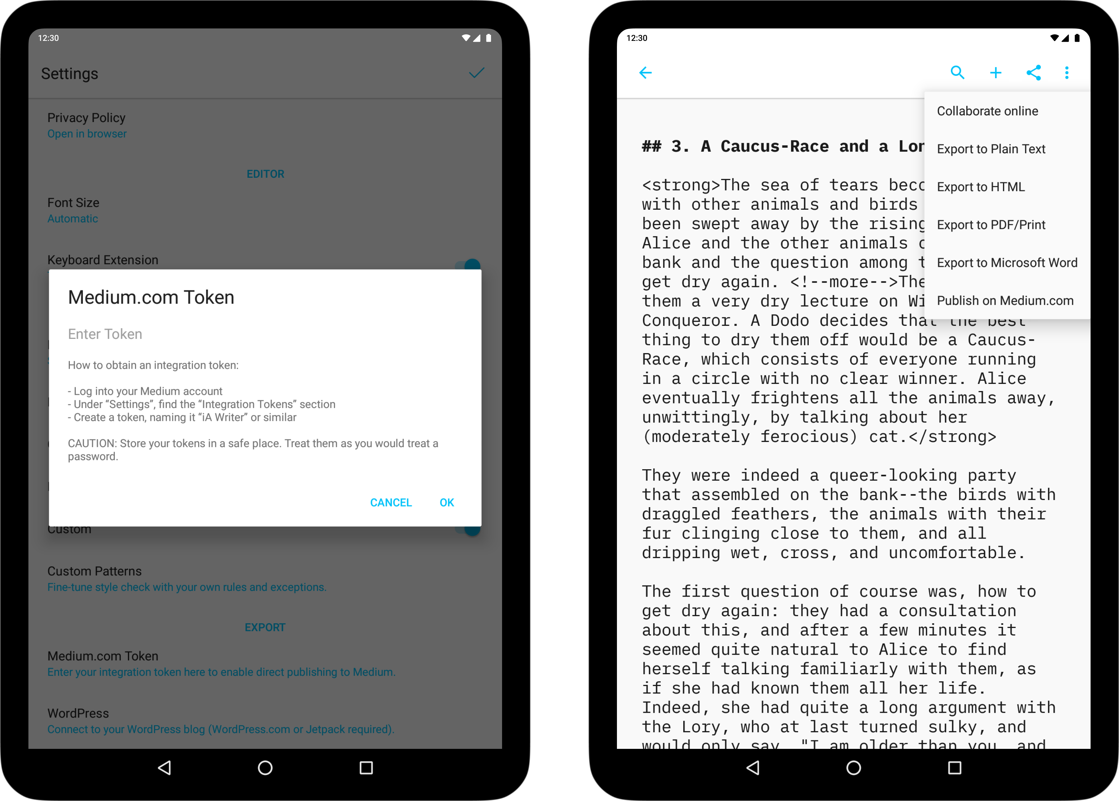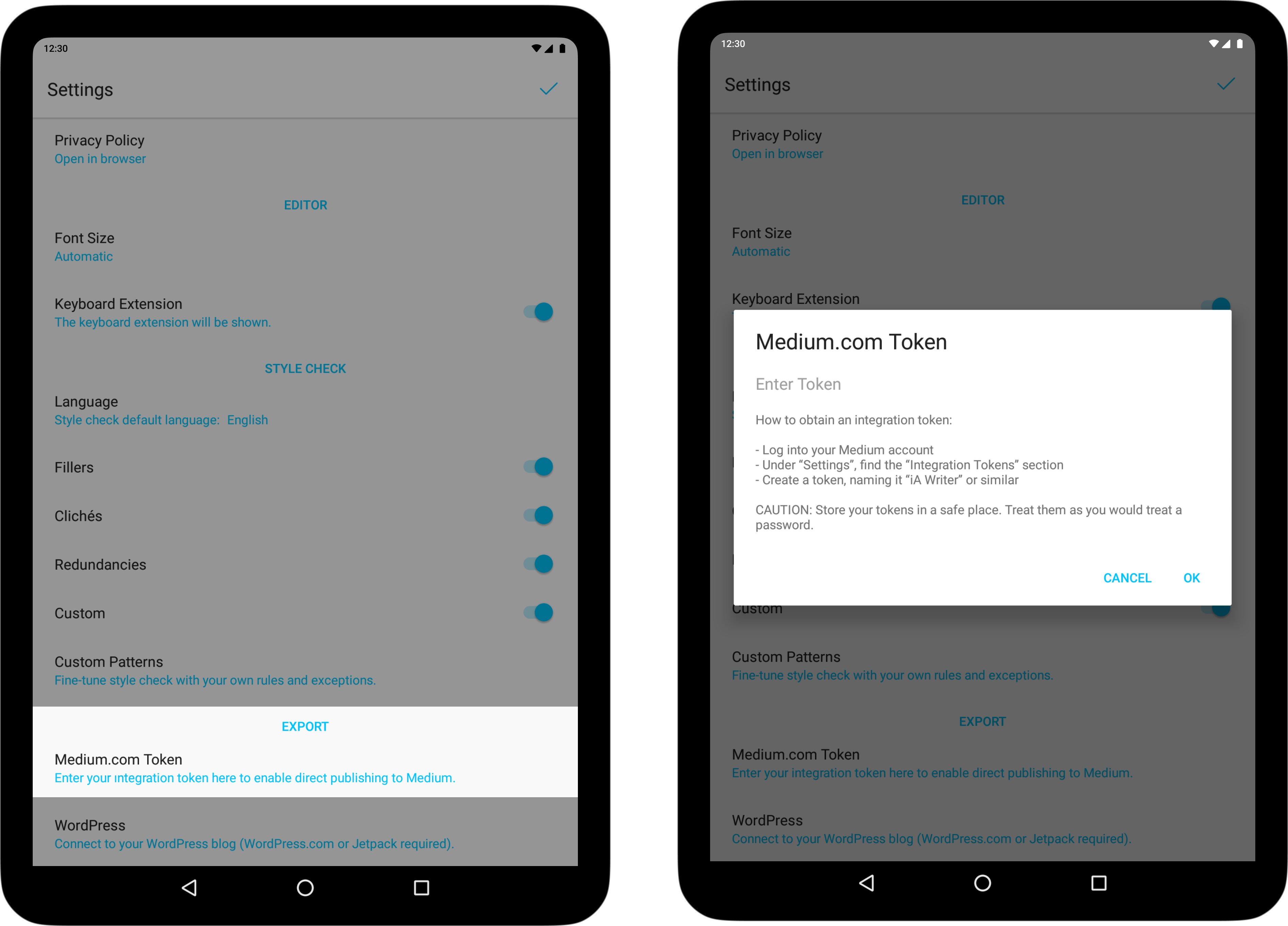 - Add the token to iA Writer using: Settings → Export → Medium.com Token