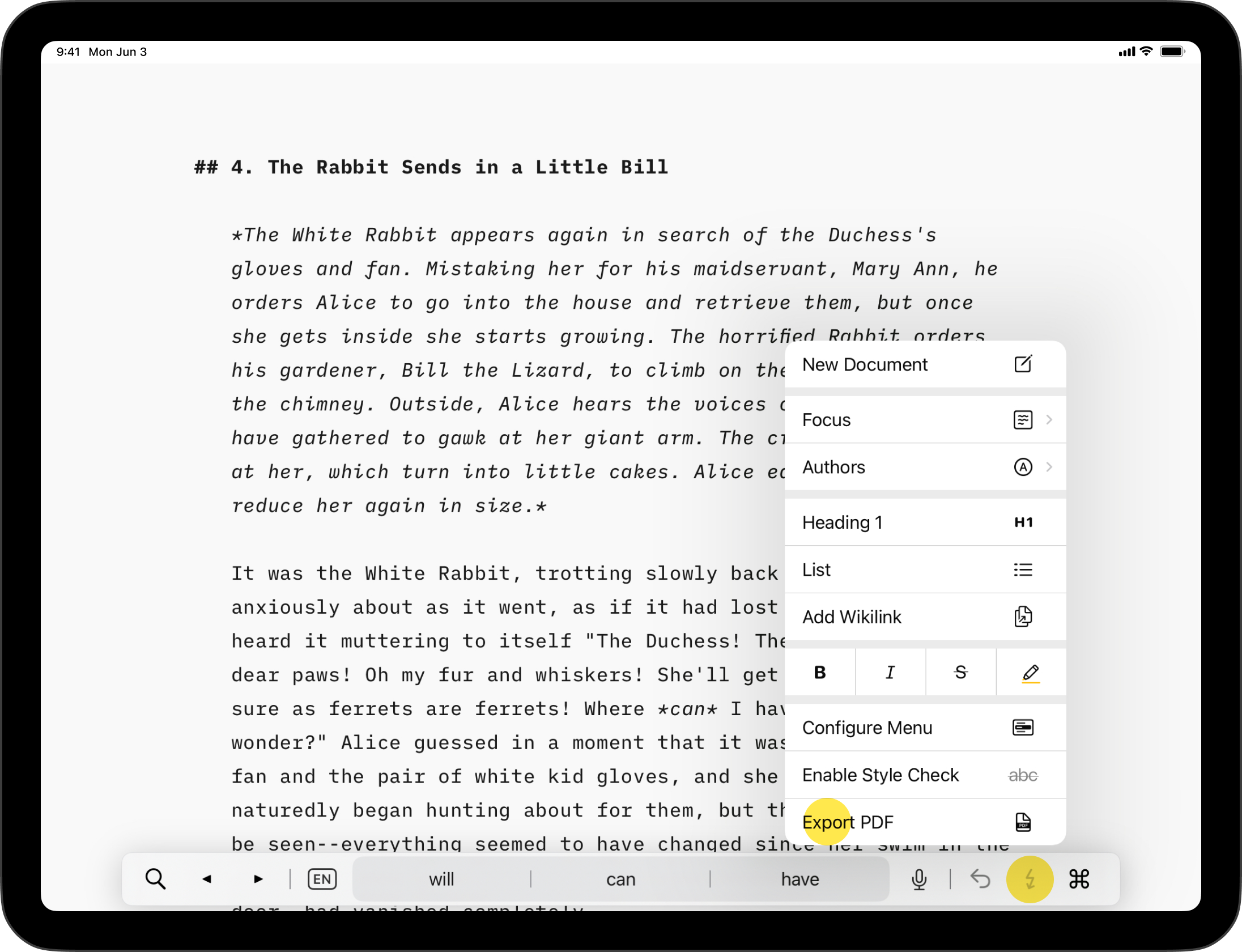 iA Writer for iPad is a plain-text editor but, with a plethora of ways to export your text, it helps you produce beautiful and professional documents.